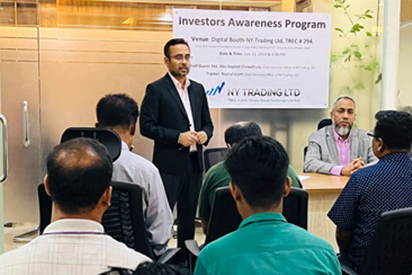 Investment awareness programme at Fakiraful Digital Booth NY Trading Ltd. organized an 'Investors Awareness Program' at 167/1, DIT Extension Road, Monir Tower (6th Floor), Fakiraful, Dhaka-1000 on Tuesday 07 May 2024, Mr. Md Abu Sayeed Chowdhury (CEO of NY Trading Ltd.) was present as Chief Guest. Mr. Md Abu Sayeed Chowdhury urged the investors to learn from the awareness programmes and take rational investment decisions. He also appreciated the initiative and underpinned the necessity of continuing such programmes to achieve long-term market stability.